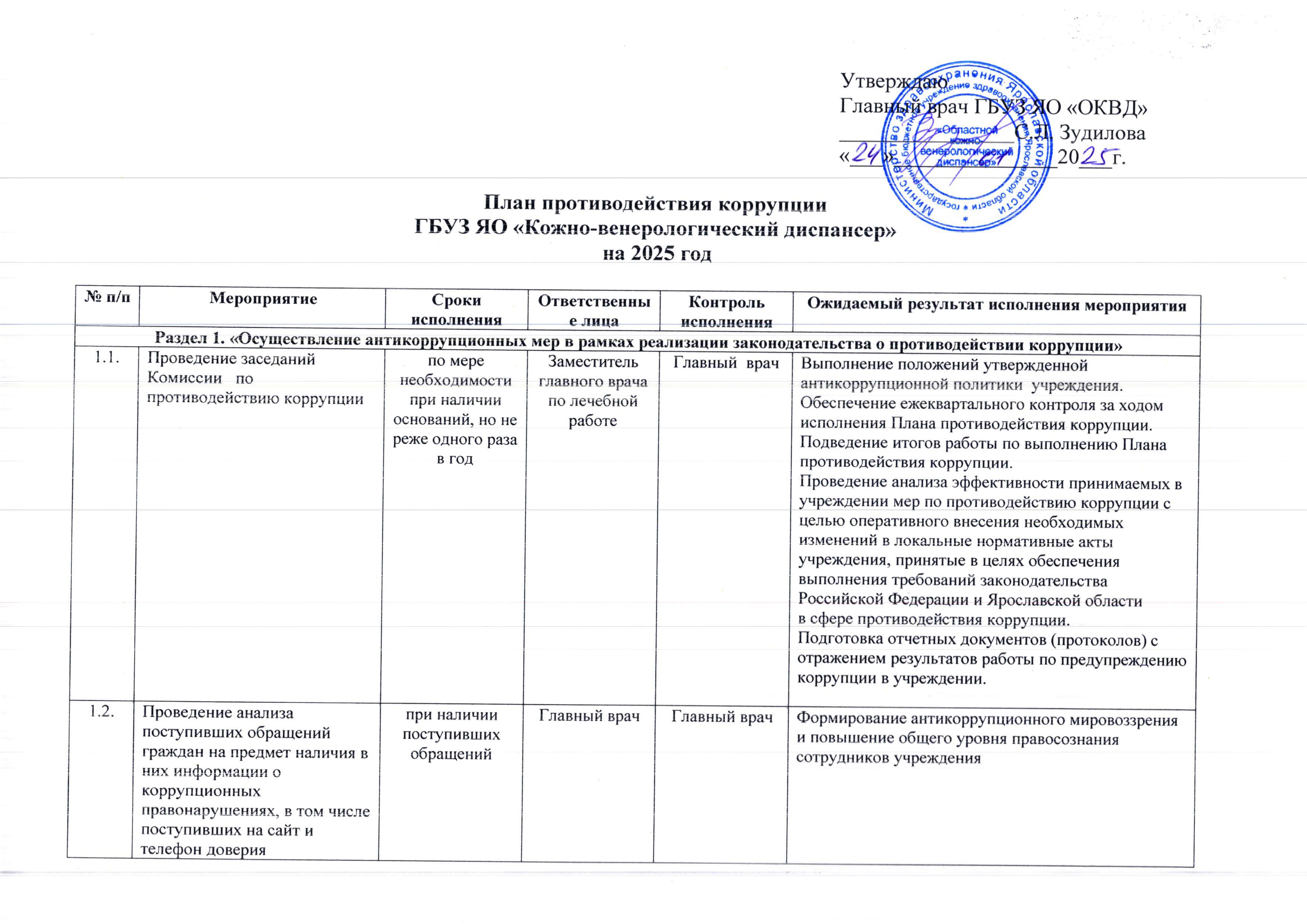 План противодействия коррупции ГБУЗ ЯО «Областной кожно-венерологический диспансер»